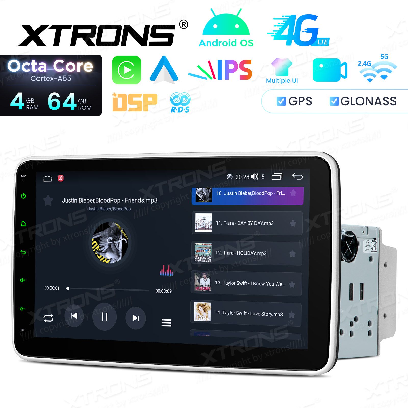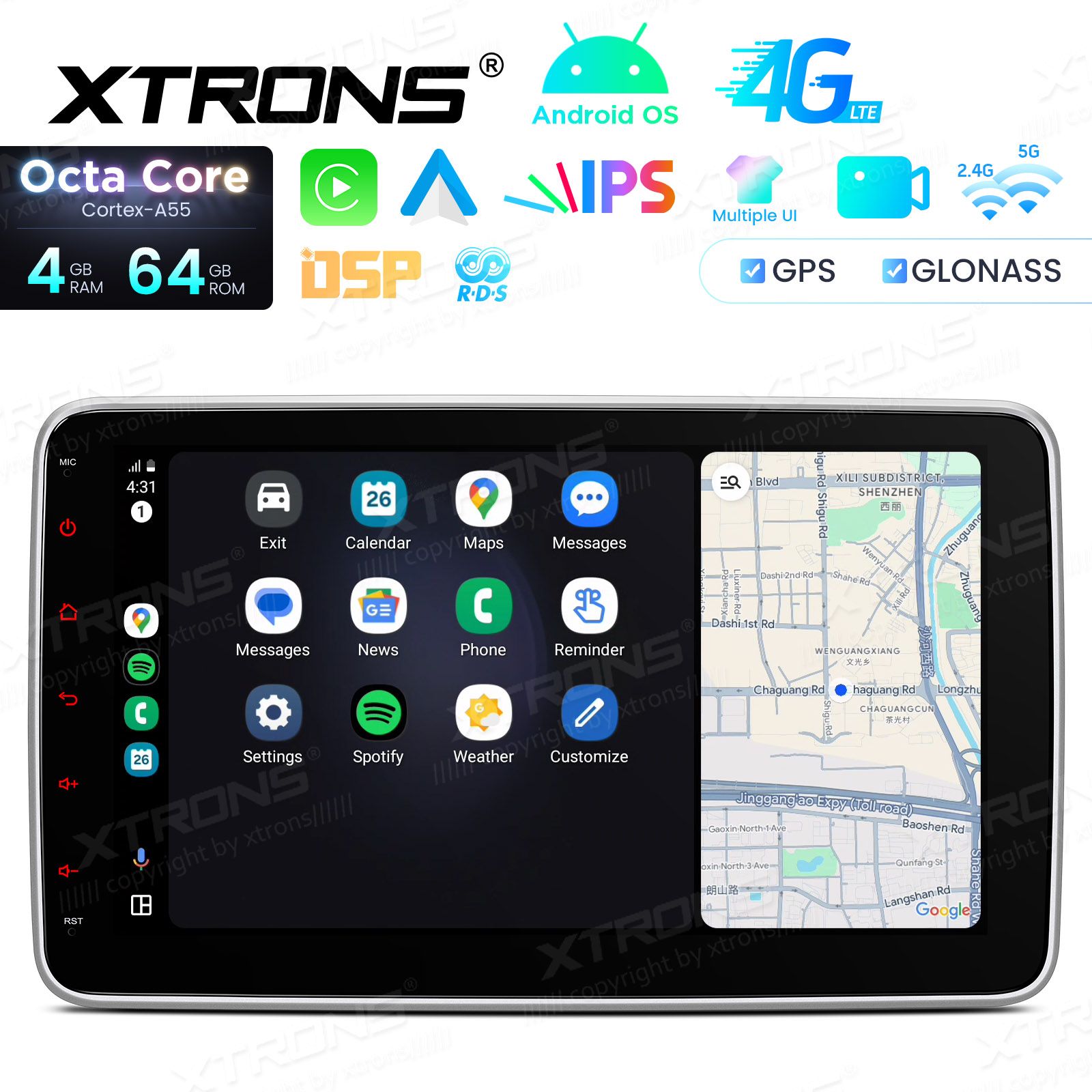 Android 14 | Octa-Core Coretex A55 (2.0 GhZ) | Bluetooth 5.0 telefonikõned ja muusika striim | kõik Google Play äpid: Waze, Youtube, GoogleMaps, Spotify jne. | Apple CarPlay (juhtmevaba) & Android Auto (juhtmevaba ja juhtmega)