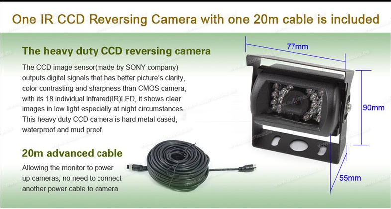 - Komplektis sisaldub Ekraan + 1 IR öönagemisega AHD 1080P kaamera + 20m 4PIN video kaabel