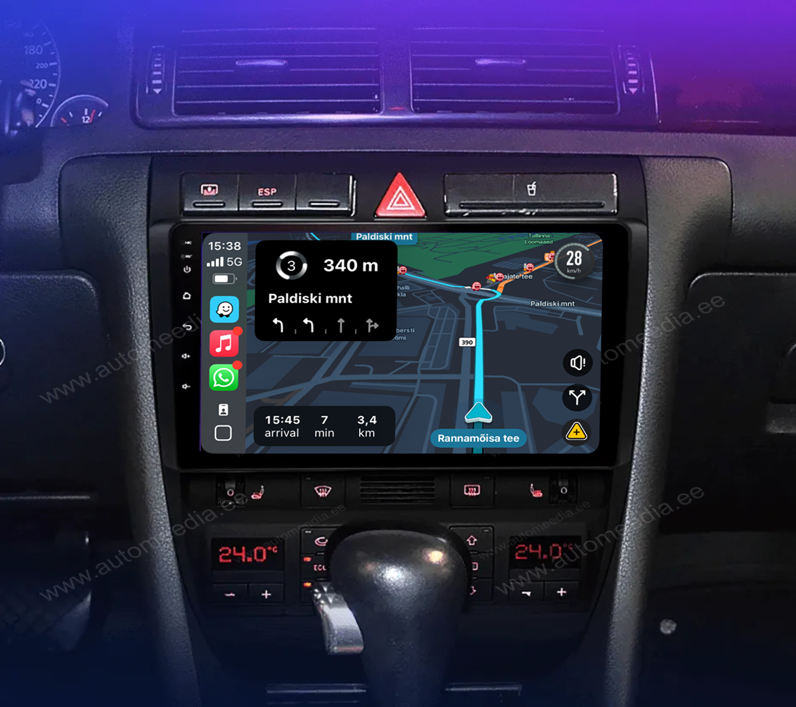 Autoraadiole on sisseehitatud Apple CarPlay (juhtmevaba) ja android telefonidele Android Auto (juhtmega) funktsioon. Ühenda oma telefon meediakeskuse USB kaablile ja too CarPlay rakendused naviraadio ekraanile. Äpid töötavad sinu telefonis, pilt kuvatakse meediakeskuse ekraanile..