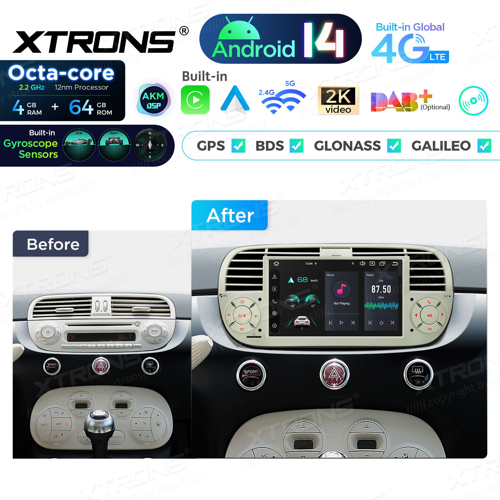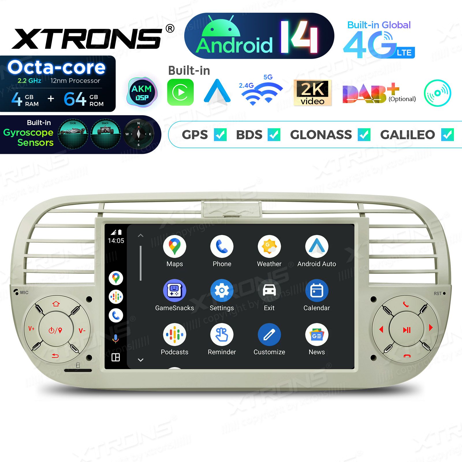 Android 14 | Octa-Core Coretex A53 (2.0 GhZ) | Bluetooth 5.0 telefonikõned ja muusika striim | kõik Google Play äpid: Waze, Youtube, GoogleMaps, Spotify jne. | Apple CarPlay (juhtmevaba) & Android Auto (juhtmevaba ja juhtmega)