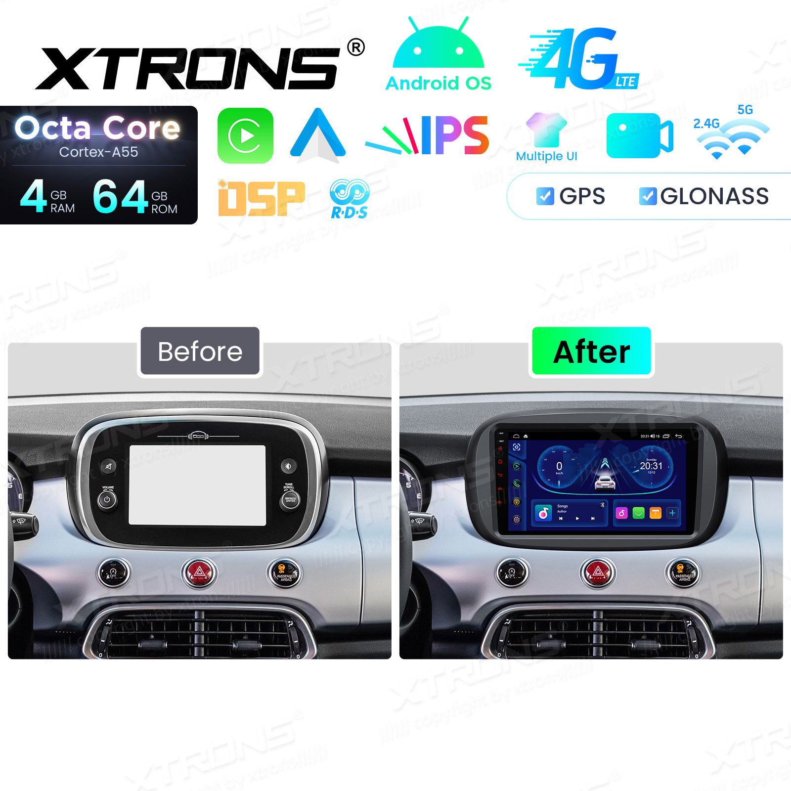 Android 14 | Octa-Core Coretex A55 (2.0 GhZ) | Bluetooth 5.0 telefonikõned ja muusika striim | kõik Google Play äpid: Waze, Youtube, GoogleMaps, Spotify jne. | Apple CarPlay (juhtmevaba) & Android Auto (juhtmevaba ja juhtmega)