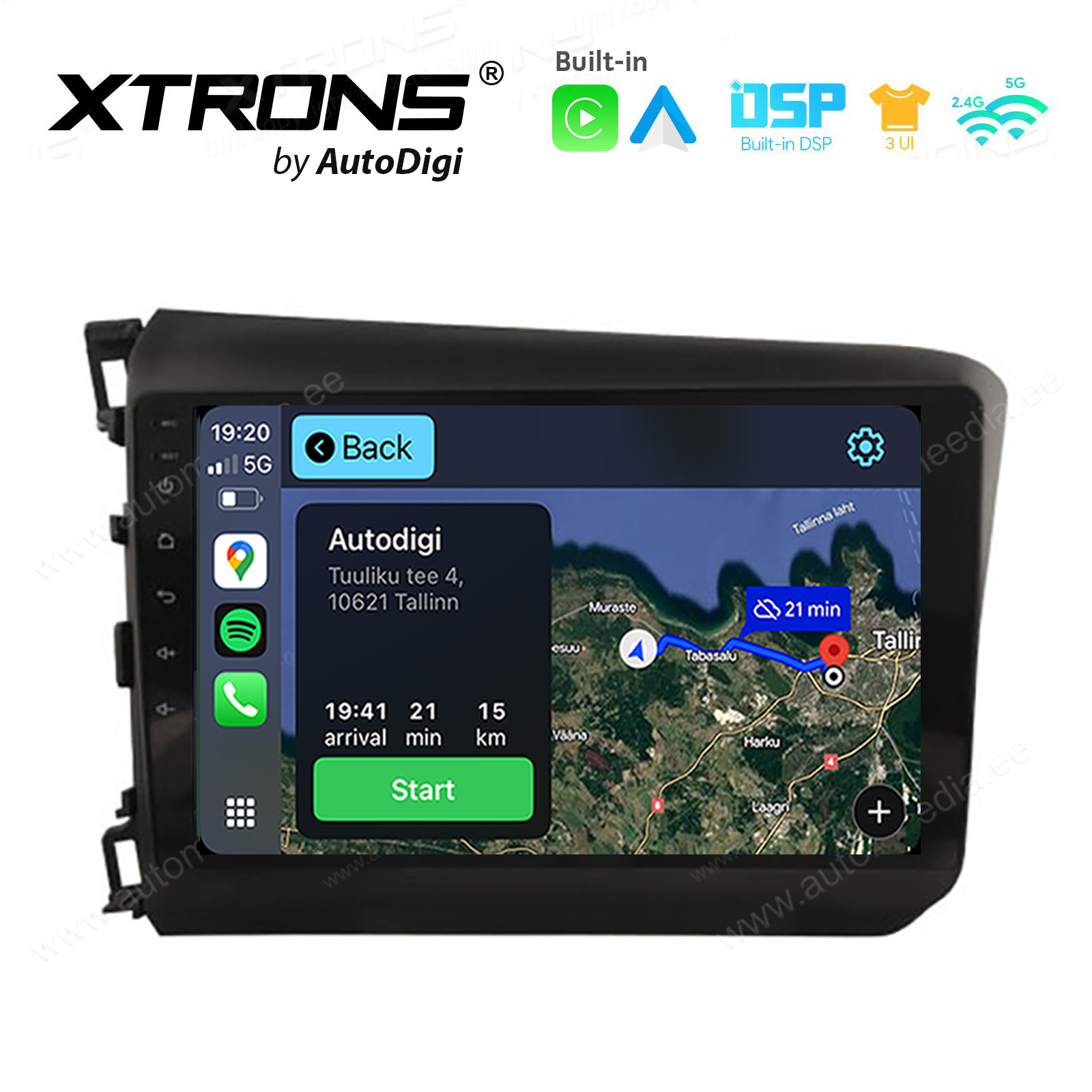 - Sisseehitatud GPS navigaator Waze, GoogleMaps, iGo