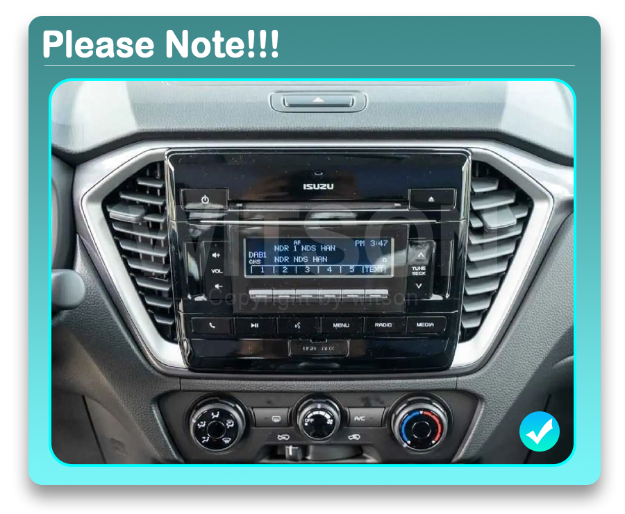 ISUZU D-Max (2020-2022) – XTRONS XTR9427 multimeedia keskus ühildub otse auto originaal-pistikutele ja on kuju poolest disainitud täpselt originaalraadio sarnane. Seetõttu ei nõua paigaldus üleminekuid ega sobitusadaptereid ja raadio installeerimine on üsna jõukohane ka isetegijale. Tasub tähele panna, et kuigi tegemist on auto mudelipõhise mutimeedia raadioga ja üldjuhul sujub paigaldamine kaasaoleva juhtmekomplekti abil, siis teatud juhtudel võib mõne vähemlevinud varustustaseme korral olla vajalik teistsuguse spetsiaalse juhtmekomplekti tellimine. Vaata allpool kirjeldust. Ise paigaldamisel on abiks kindlasti ka YouTube videod, kust hankida nippe originaalraadio eemaldamiseks ja uue paigaldamiseks. Kui sa ei ole toote sobivises päris kindel või soovid raadio ikkagi lasta paigaldada kogenud asjatundjal, siis võta meiega ühendust meilitsi asiakaspalvelu@xtrons.fi - anname sulle meie koostööpartnerite kontaktid (Tallinnas, Pärnus, Rakveres, Tartus, Haapsalus või Helsingis).