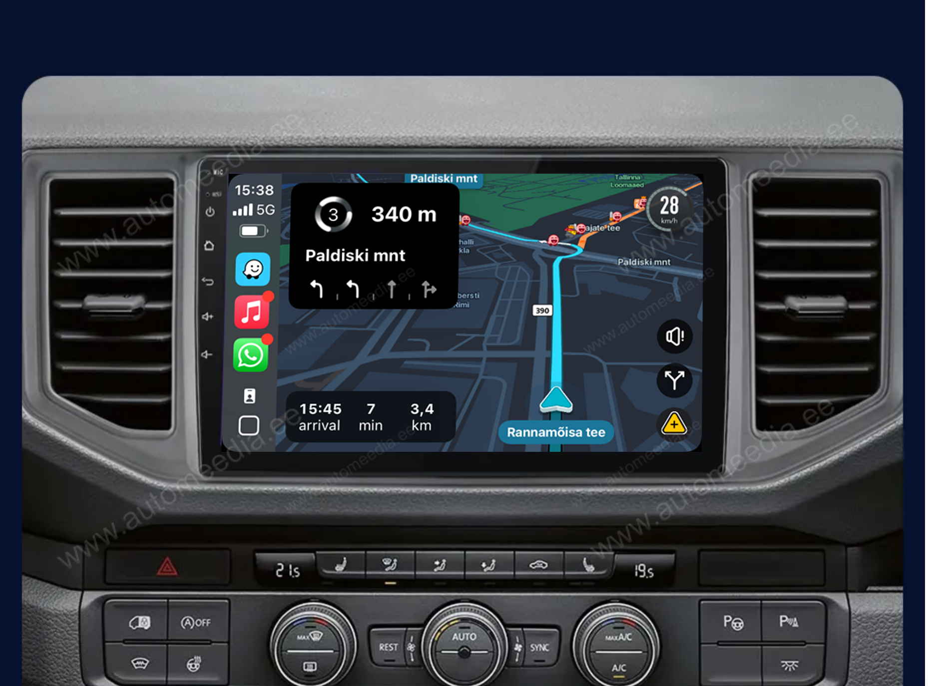 Autoraadiole on sisseehitatud Apple CarPlay (juhtmevaba) ja android telefonidele Android Auto (juhtmega) funktsioon. Ühenda oma telefon meediakeskuse USB kaablile ja too CarPlay rakendused naviraadio ekraanile. Äpid töötavad sinu telefonis, pilt kuvatakse meediakeskuse ekraanile..