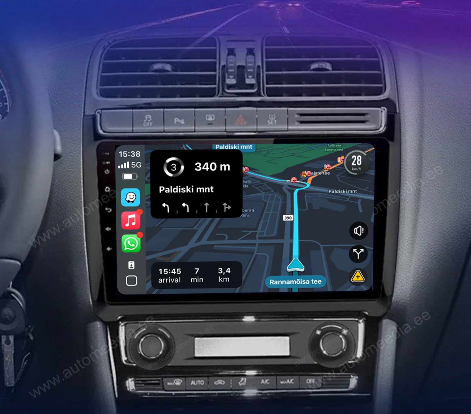 - Sisseehitatud GPS navigaator Waze, GoogleMaps, iGo