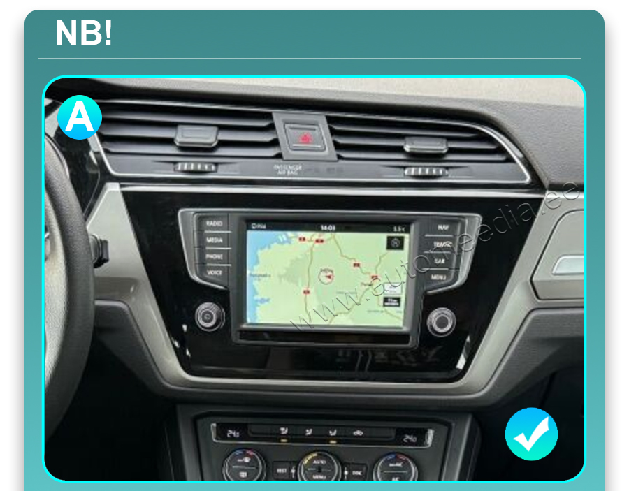 VW Touran (2016-2018) – XTRONS XTR9221 multimeedia keskus ühildub otse auto originaal-pistikutele ja on kuju poolest disainitud täpselt originaalraadio sarnane. Seetõttu ei nõua paigaldus üleminekuid ega sobitusadaptereid ja raadio installeerimine on üsna jõukohane ka isetegijale. Tasub tähele panna, et kuigi tegemist on auto mudelipõhise mutimeedia raadioga ja üldjuhul sujub paigaldamine kaasaoleva juhtmekomplekti abil, siis teatud juhtudel võib mõne vähemlevinud varustustaseme korral olla vajalik teistsuguse spetsiaalse juhtmekomplekti tellimine. Vaata allpool kirjeldust. Ise paigaldamisel on abiks kindlasti ka YouTube videod, kust hankida nippe originaalraadio eemaldamiseks ja uue paigaldamiseks. Kui sa ei ole toote sobivises päris kindel või soovid raadio ikkagi lasta paigaldada kogenud asjatundjal, siis võta meiega ühendust meilitsi asiakaspalvelu@xtrons.fi - anname sulle meie koostööpartnerite kontaktid (Tallinnas, Pärnus, Rakveres, Tartus, Haapsalus või Helsingis).
